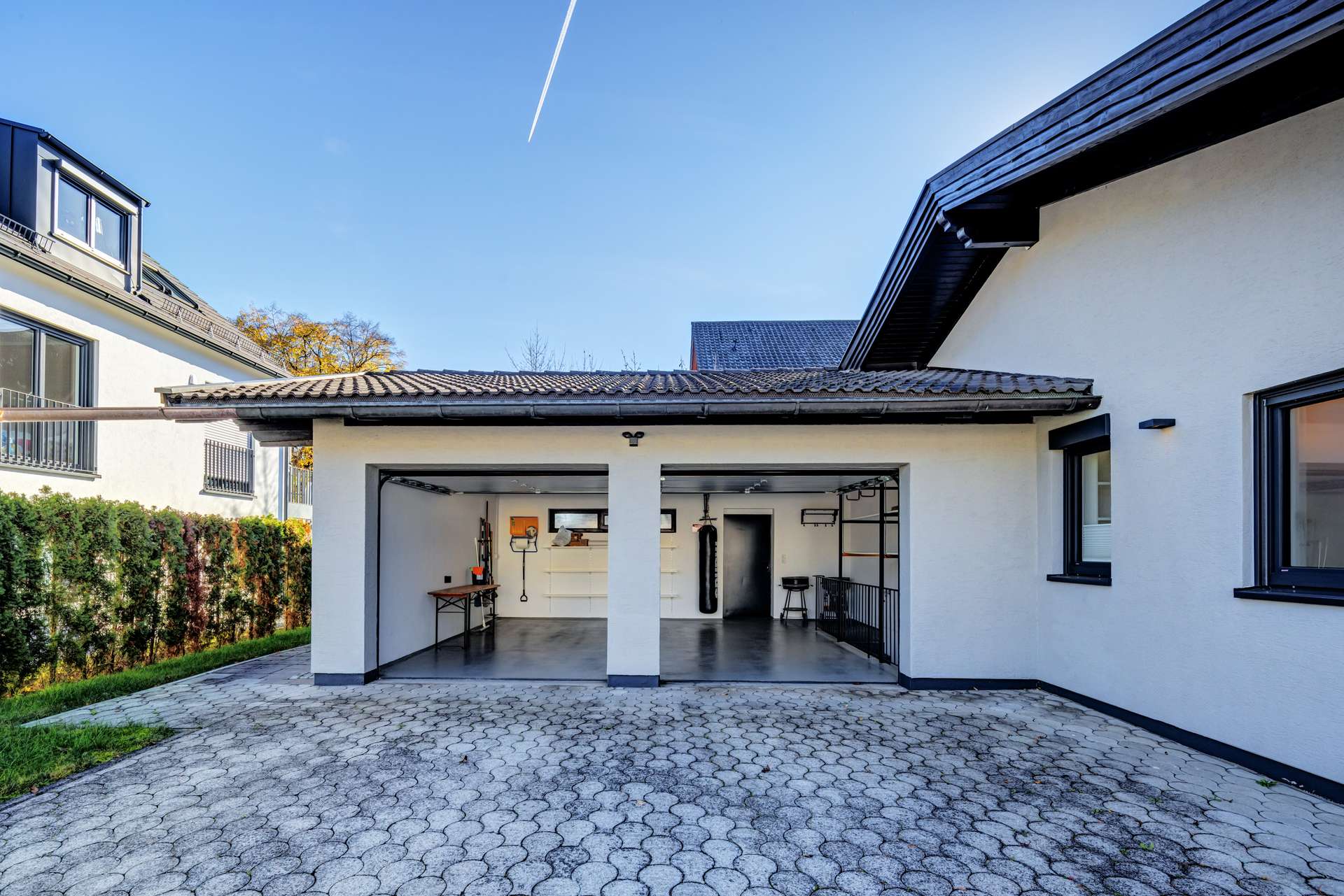 Dieser umfassend kernsanierte, moderne Bungalow überzeugt durch stilvolles Wohnen auf rund 270 m² Wohnfläche – Nutzfläche eingebettet in ein großzügiges Grundstück von ca. 794 m². Ein besonderes Highlight ist der großzügige Wohn- und Essbereich, der viel Raum für gemeinsame Stunden schafft. Die offene Gestaltung sorgt für ein angenehmes Raumgefühl und eine einladende Atmosphäre. Dank der bodentiefen Fenster wird der Innenraum mit natürlichem Licht durchflutet und ermöglicht einen schönen Blick in den Garten. Der Bungalow verfügt über drei komfortable Schlafzimmer, die Ihnen erholsame Nächte garantieren. Ein modernes Badezimmer sowie ein zusätzliches Gäste-WC bieten Ihnen hohen Wohnkomfort. Darüber hinaus stehen zwei geräumige Hobbyräume zur Verfügung, die sich flexibel nutzen lassen. Ein charmantes Stüberl ergänzt das Raumangebot und lädt zum Entspannen und Verweilen ein. Die hochwertige Ausstattung des Hauses, einschließlich einer Fußbodenheizung, sorgt für ein angenehmes Wohnklima und lässt keine Wünsche offen. Der weitläufige Garten bietet ausreichend Platz zum Entspannen und Genießen – perfekt für gemütliche Grillabende mit Freunden. Insgesamt erwartet Sie hier ein modernes und hochwertig ausgestattetes Zuhause in einer ruhigen, aber dennoch zentralen Lage – ideal für ein komfortables Wohnen mit der ganzen Familie.