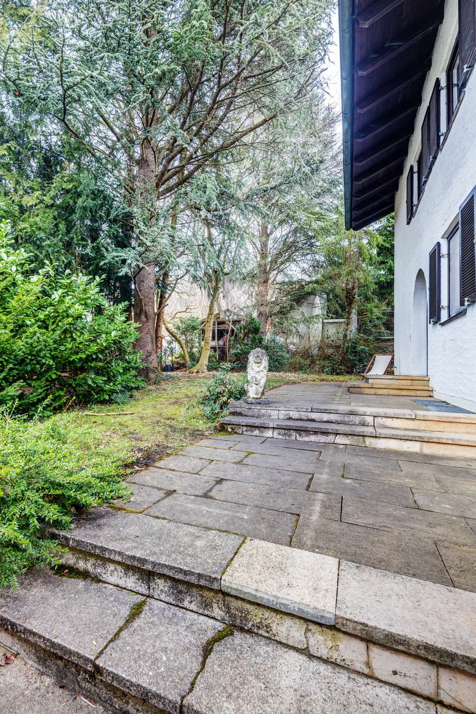Der Wohnbereich im Erdgeschoss präsentiert sich hell und einladend. Terracottafliesen sowie hochwertiges Eichenparkett im Erdgeschoss und im ersten Obergeschoss verleihen den Räumen eine warme, mediterrane Ausstrahlung. Ein großzügiger Rundbogen sorgt für ein offenes Raumgefühl und lässt viel Tageslicht herein. Von hier aus gelangen Sie direkt auf die weitläufige Terrasse mit schönem Blick in den gepflegten Garten – ein idealer Ort zum Entspannen und Verweilen. Ergänzt wird das Außenangebot durch einen südwestlich ausgerichteten Eckbalkon mit optimaler Sonnenausrichtung.