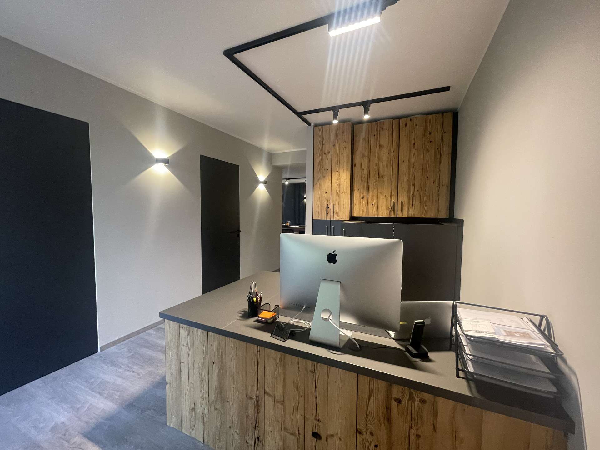 Diese Einheit eignet sich ideal für kreative Büros, Praxisräume oder exklusive Arbeitsbereiche, die Wert auf Design, Funktionalität und ein inspirierendes, warmes Ambiente legen.