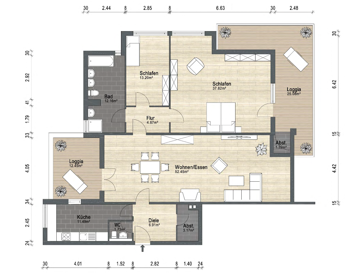 Ges. Fläche Terrasse: ca. 25,5 m²